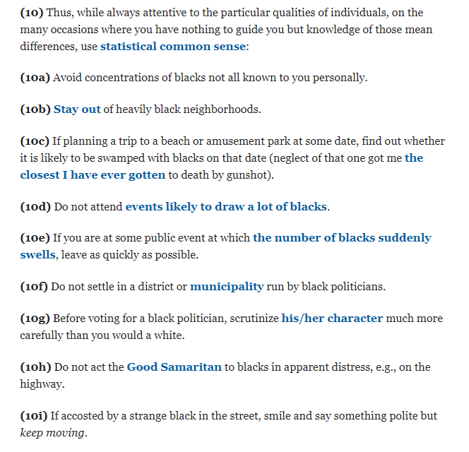 “And I would say, based on the current way things are going, the best advice I can give to White people is to get the hell away from Black people,” he continued, adding, “There is no fixing this … you just have to escape,” which he said was why he moved to his current neighborhood that has “a very low Black population.”….
