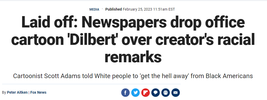 Dilbert creator Scott Adams has apparently rustled some jimmies as it were because of some comments he made in a video a few days ago.