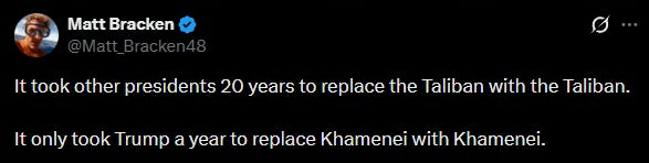 Got rid of the old Khamenei who wanted to be martyred and replaced him with a much younger and far more militant Khamenei. That is the sort of military genius we have come to expect from this administration.
